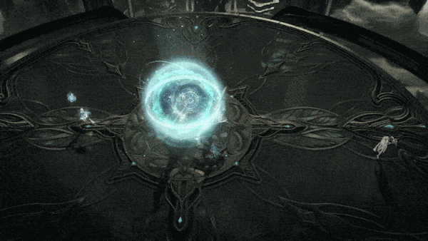 劳力埃对全场施放一次大范围攻击后,场地中央会随机亮起两道光柱,随后在场地内生成多个球体。