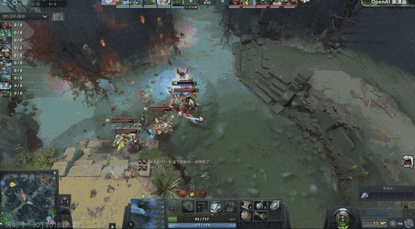 虽然OpenAI输掉了这场比赛,但其中并不乏精彩的镜头。AI操纵潮汐猎人多次抓准时机,反手跳大控制住人类多名玩家;矮人直升机召唤飞弹、高射火炮齐开几轮清场。对战期间,AI甚至一度逼得职业战队玩家W33在屏幕上打出:“?”。