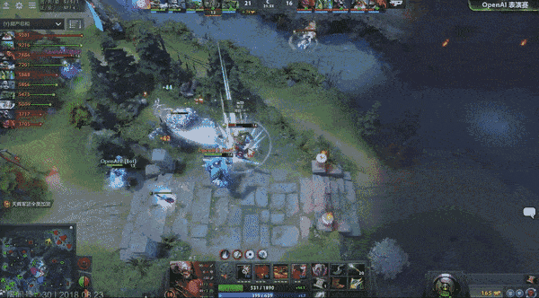 其他方面,与之前8月6日的OpenAI Five Benchmark相同,依然是18个英雄可选,没有召唤单位和幻象,没有圣剑和瓶子,没有扫描(从视频来看有扫描按钮,但是全场无人使用)。