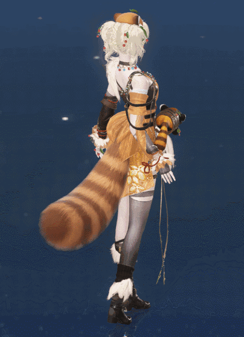 点缀在细节处的浆果和树叶装饰,蓬松的白毛,以及衣服腰部活灵活现的小熊猫挂件,都为整套时装增添了几分森系感和俏皮气质。玩家不仅可以变身小熊猫闯荡江湖,挂件还相当于多送了玩家一个软萌跟宠,血赚了咱就是说。